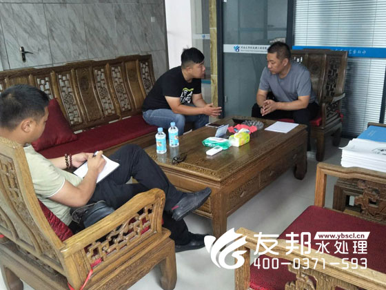 2019.4.25早上來(lái)自山西晉城的客戶(hù)來(lái)到我們鄭州友邦水處理設(shè)備有限公司。 我們張經(jīng)理親自接待他們,帶他們參觀(guān)我們樓下的設(shè)備生產(chǎn)車(chē)間詳細(xì)講解友邦水處理設(shè)備的工藝流程以及生
