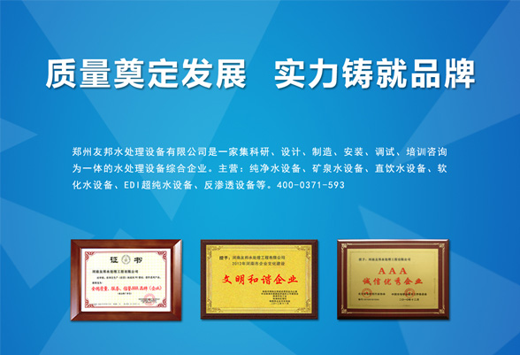 鄭州友邦水處理設(shè)備有限公司始創(chuàng)于2003年。服務(wù)熱線(xiàn):15516902883,自成立以來(lái),友邦始終堅(jiān)持以“客戶(hù)利 益為保障”的原則,打造友邦口碑,備受客戶(hù)的認(rèn)可和信賴(lài)。鄭州友邦