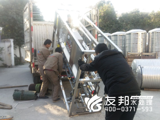 面包廠生產(chǎn)用水水質(zhì)達到了飲用水衛(wèi)生標準,這樣生產(chǎn)出的面包才會口味香甜醇正,鄭州友邦生產(chǎn)的2噸面包廠純凈水設備采用了反滲透膜分離技術(shù),保證設備的出水水質(zhì)衛(wèi)生、新鮮、安全。如圖顯示這套2噸面包廠純凈水設備正在整車發(fā)貨。