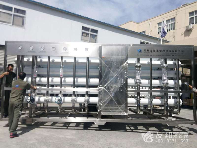 原水→增壓泵(一用一備)→砂過濾器→炭過濾器→硬化器(根據(jù)地區(qū)不合選用)→精密過濾器→兩頭水箱→RO前水泵→精密過濾器→RO高壓泵→RO反滲透零碎→RO水箱→RO水增壓泵→EDI電去離子主機→去離子水箱→去離子水泵→拋光混床→終端緊密過濾→UV紫外線殺菌→設(shè)備用水