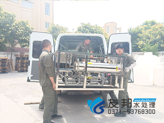 今天發(fā)的貨比較多,其中就是汝州10噸純凈水設(shè)備,看師傅們把設(shè)備抬上車,還配有罐子,石英砂,活性炭等耗材,下面友邦小編教大家該如何去清洗設(shè)備。1、按選定的清洗劑配方,在清洗水箱中