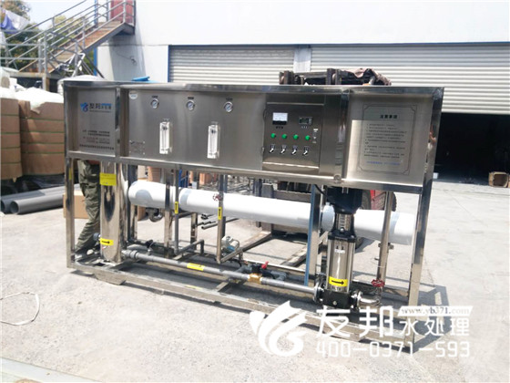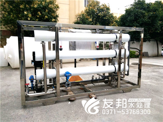 這套河南友邦生產(chǎn)5噸純凈水制取裝置由預(yù)處理、反滲透技術(shù)及精