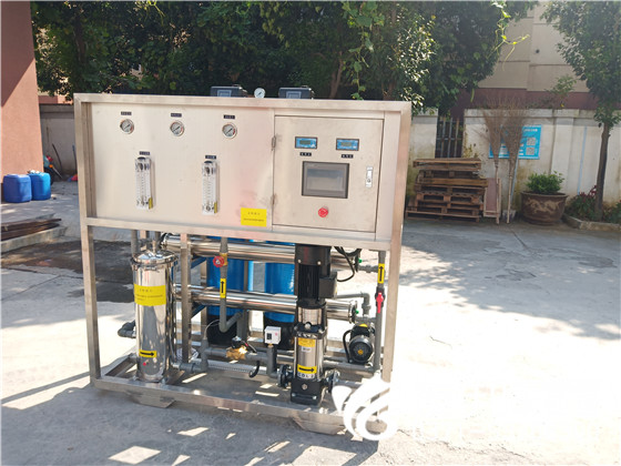 此套0.5噸純凈水設(shè)備是發(fā)往河南安陽用于金剛石加工行業(yè)。0.5噸雙級(jí)純凈水設(shè)備全不銹鋼一體機(jī),整套系統(tǒng)包含不銹鋼原水箱、原水泵、不銹鋼石英砂過濾器、不銹鋼活性炭過濾器、
