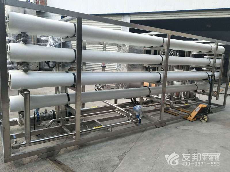 原水→增壓泵(一用一備)→砂過濾器→炭過濾器→硬化器(根據(jù)地區(qū)不合選用)→精密過濾器→兩頭水箱→RO前水泵→精密過濾器→RO高壓泵→RO反滲透零碎→RO水箱
